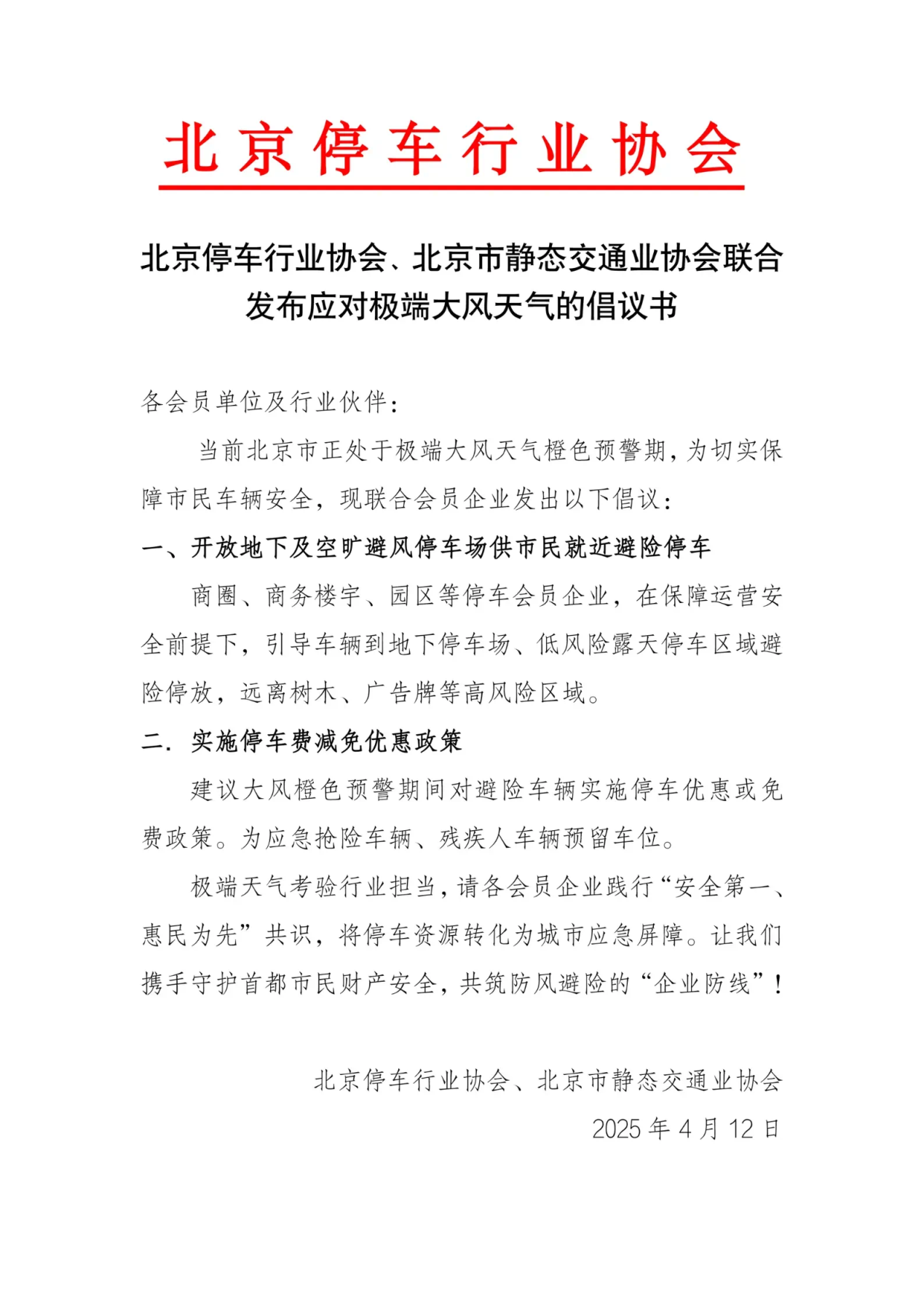 北京市泊车行业协会4月12日发布倡议公告。新华社发(图据网罗)
