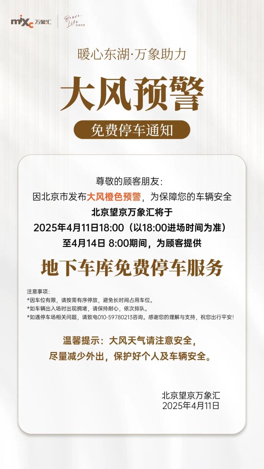 4月13日,北京分区域大风橙色预警捏续。北京石景山区配合28家机关奇迹单元泊车场和22家各人泊车场,提供免费泊车位9369个;北京市交管部门对一些区域的路侧泊车位开展柔性功令,通过巡缉喊话、电话奉告等表情,教导车主实时挪移车辆,幸免停放在告白牌、施工围挡、老旧树木独揽等危急区域。